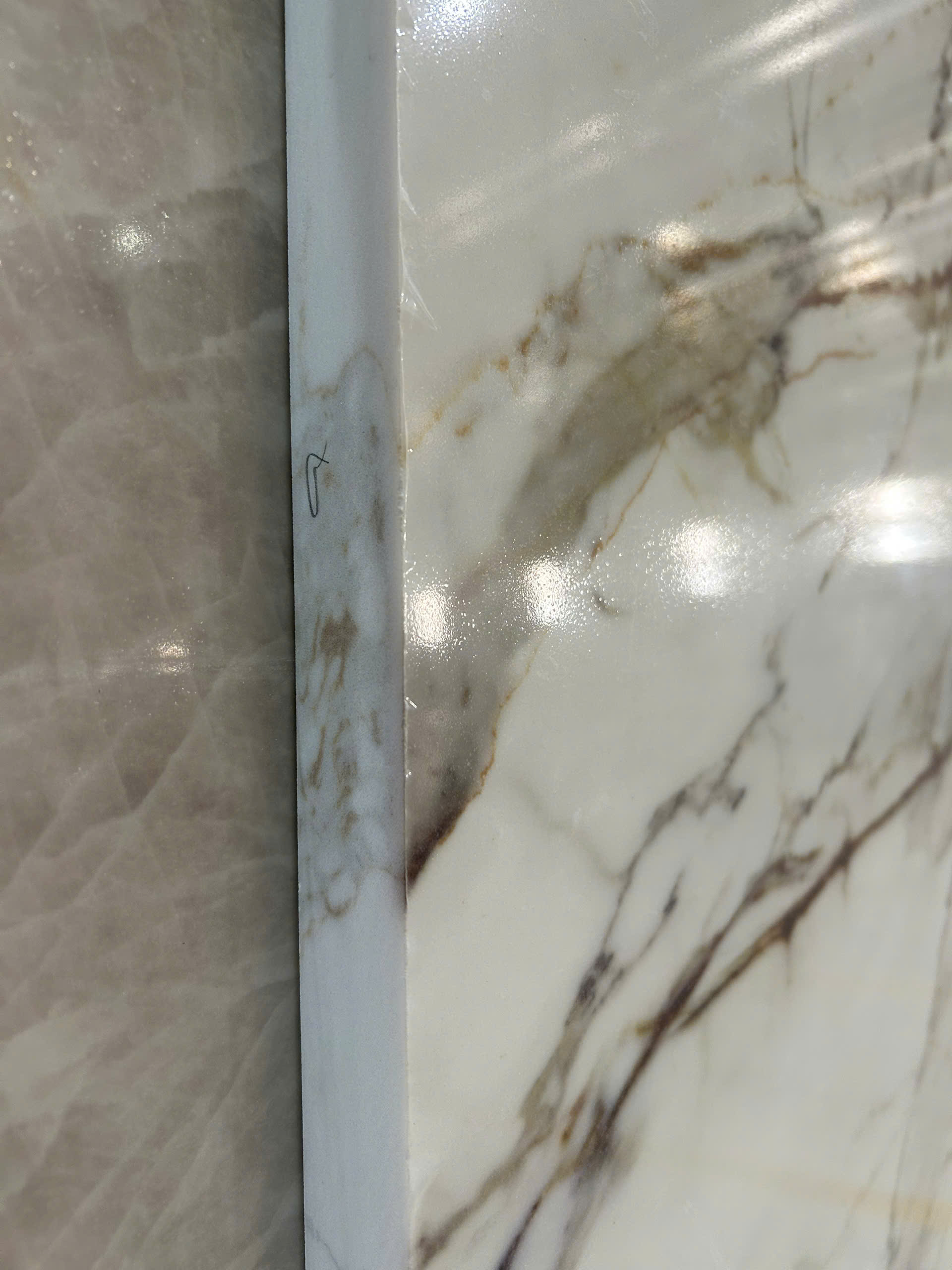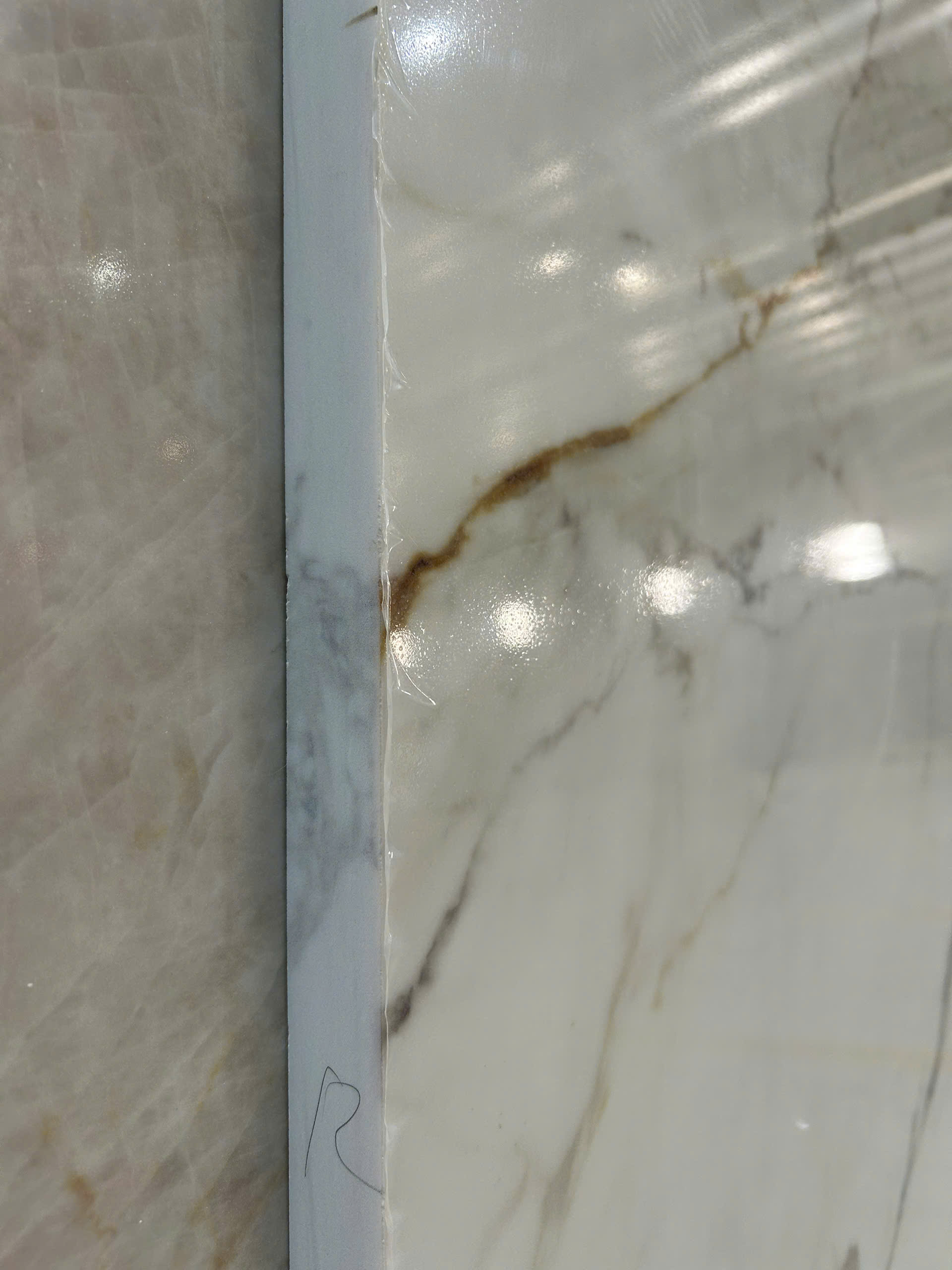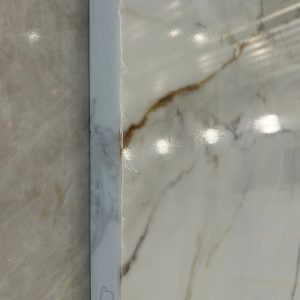 What truly sets Arabescato Gold apart is full body printed technology. This advanced technique ensures that the intricate marble-like veining runs through the entire thickness of the slab, not just the surface. The result is unmatched realism, allowing seamless finishes across edges, miters, and corners — perfect for waterfall islands, integrated sinks, and vertical applications. The consistent depth of pattern also reduces visible joints, enhancing the overall luxury of any space.